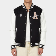 Designed with a polyester body and faux leather sleeves, it delivers varsity authenticity with a premium twist.
